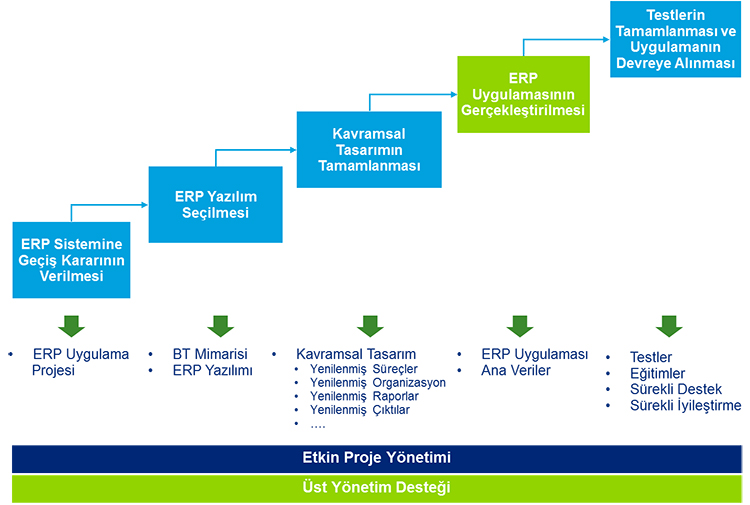ERP projelerine dâhil olan ekiplerin koordinasyonunun yanı sıra entegrasyon noktalarını takip ederek tüm süreç sahiplerinin ve proje ekibinin aynı noktada buluşmasını kurumsal bilgi yönetimi ile birlikte sağlayacak etkin bir proje yönetimi de son derece önemlidir.